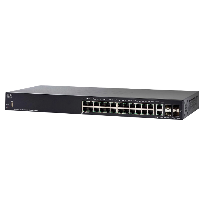- Cisco SG350-28-K9-UK | Small Business 350 Series SG350-28 24 x Ports 10/100/1000Base-T + 2 x Ports Copper Combo SFP + 2 x Ports SFP Rack-Mountable Layer 3 Managed Gigabit Ethernet Network Switch