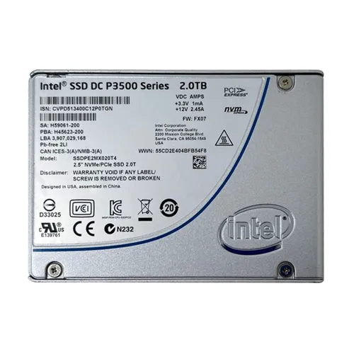 - Intel SSDPE2MX020T401 | DC P3500 2TB Multi-Level Cell PCI Express 3.0 x4 NVMe U.2 2.5-Inch Solid State Drive