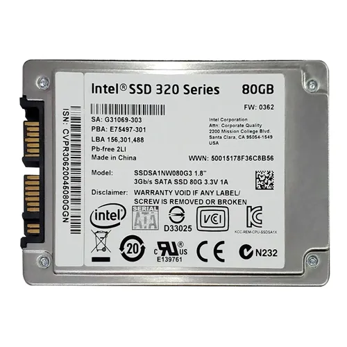 - Revolutionize your storage game with the Intel SSDSA1NW080G3 | 320 Series 80GB Multi-Level Cell (MLC) SATA 3GB/s 1.8-inch Solid State Drive, delivering unparalleled speed and reliability at your fingertips. Purchase this exceptional drive from Goto Direct and explore our collection to enhance your data solutions!