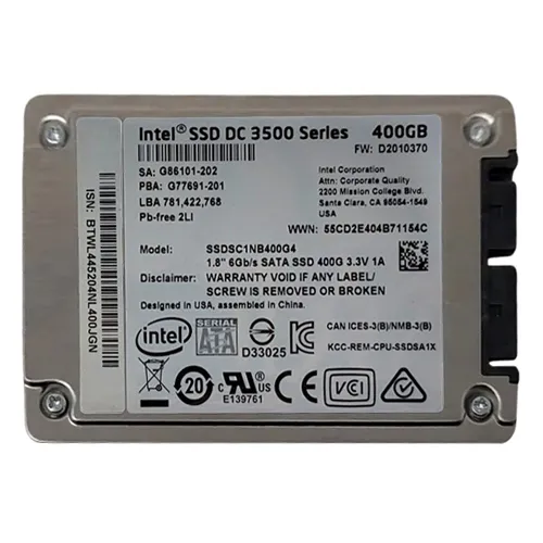 - Revolutionize your storage game with the Intel SSDSC1NB400G401 | DC S3500 Series 400GB SATA 6Gbps 1.8-inch MLC Solid State Drive, delivering unparalleled speed and reliability at your fingertips. Purchase this exceptional drive from Goto Direct and explore our collection to enhance your data solutions!