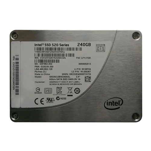 - Revolutionize your storage game with the Intel SSDSC2BW240A3L | 520 Series 240GB SATA 6GB/s 2.5-inch Solid State Drive, delivering unparalleled speed and reliability at your fingertips. Purchase this exceptional drive from Goto Direct and explore our collection to enhance your data solutions!