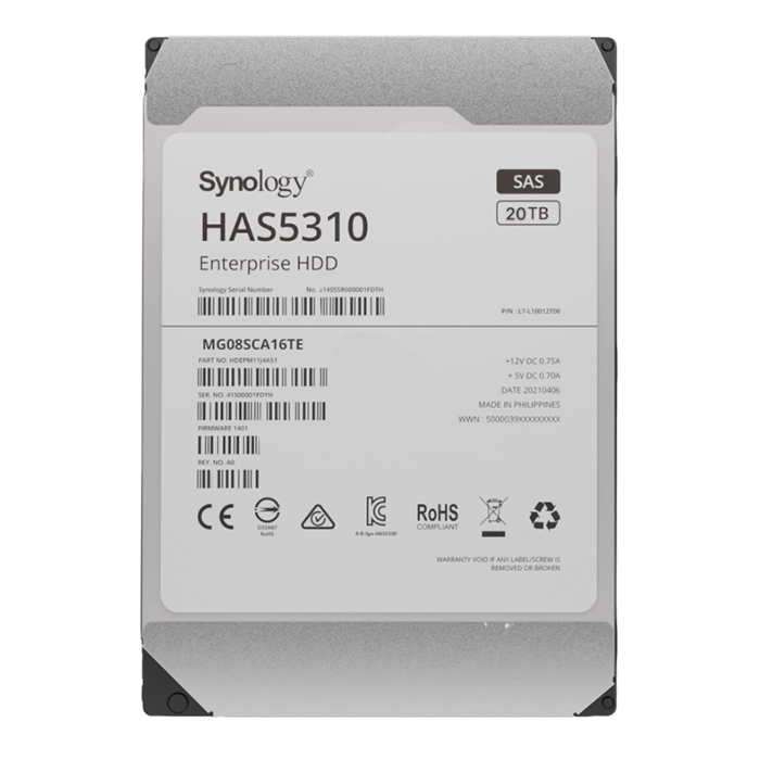- Synology HAS5310-20T | Enterprise Series 20TB 7200RPM SAS 12Gb/s 3.5-Inch Hard Drive