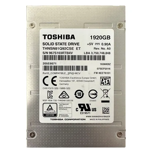 - Toshiba THNSN81Q92CSE | HK4R Series 1.92TB Multi-Level Cell SATA 6Gb/s Read Intensive 2.5-Inch Solid State Drive