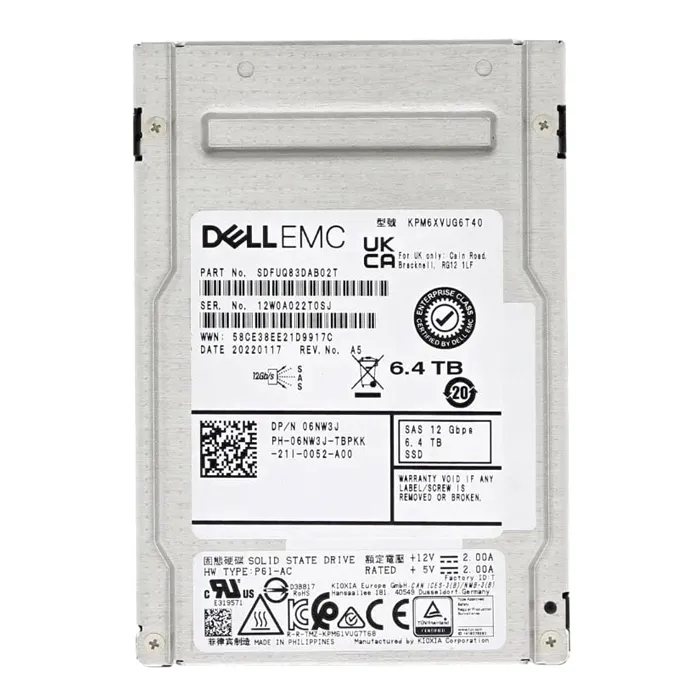 - KIOXIA KPM6XVUG6T40 | PM6-V Series 6.4TB TLC SAS 24Gbps Mixed Use (SIE) 2.5-Inch Internal Solid State Drive
