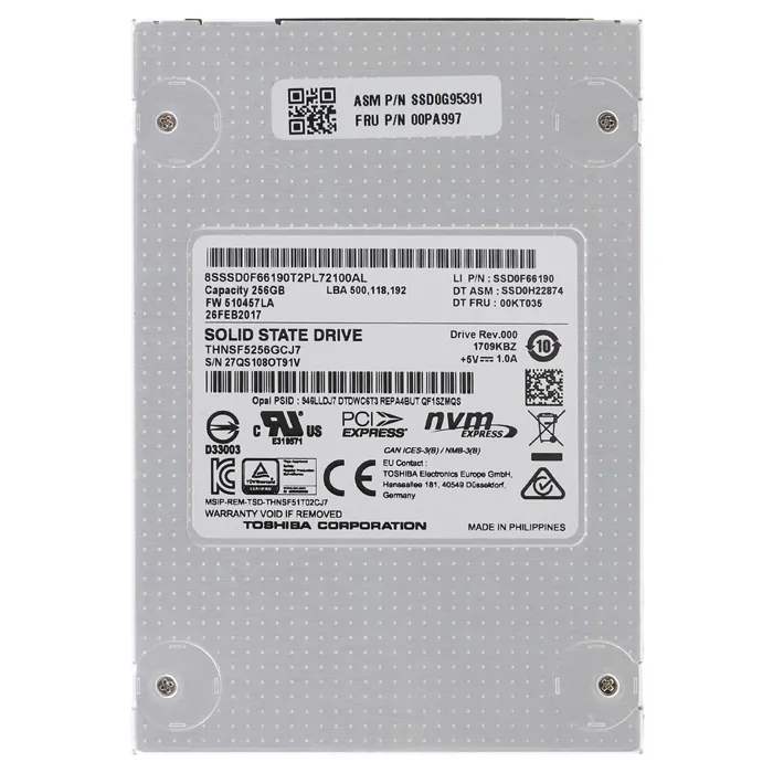 - Toshiba THNSF5256GCJ7 | XG3 Series 256GB MLC PCI Express 3.0 x2 NVMe SED/ TCG Opal 2.0 SATA Express 2.5-Inch Internal Solid State Drive