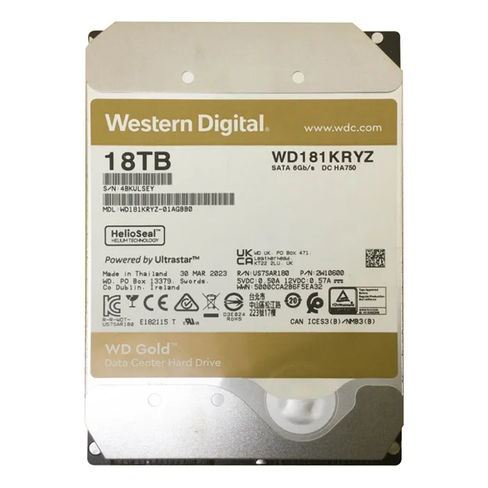 - Western Digital WD181KRYZ | Gold Helium 18TB 3.5" 6GB/s SATA 7200RPM 512MB Cache 512e Enterprise Class Hard Drive