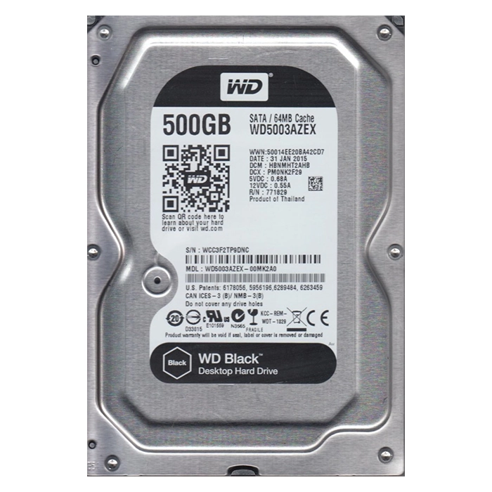 - Western Digital WD5003AZEX-00MK2A0 | Black 500GB 3.5" 6GB/s SATA 7200RPM 64MB Cache Gaming Hard Drive