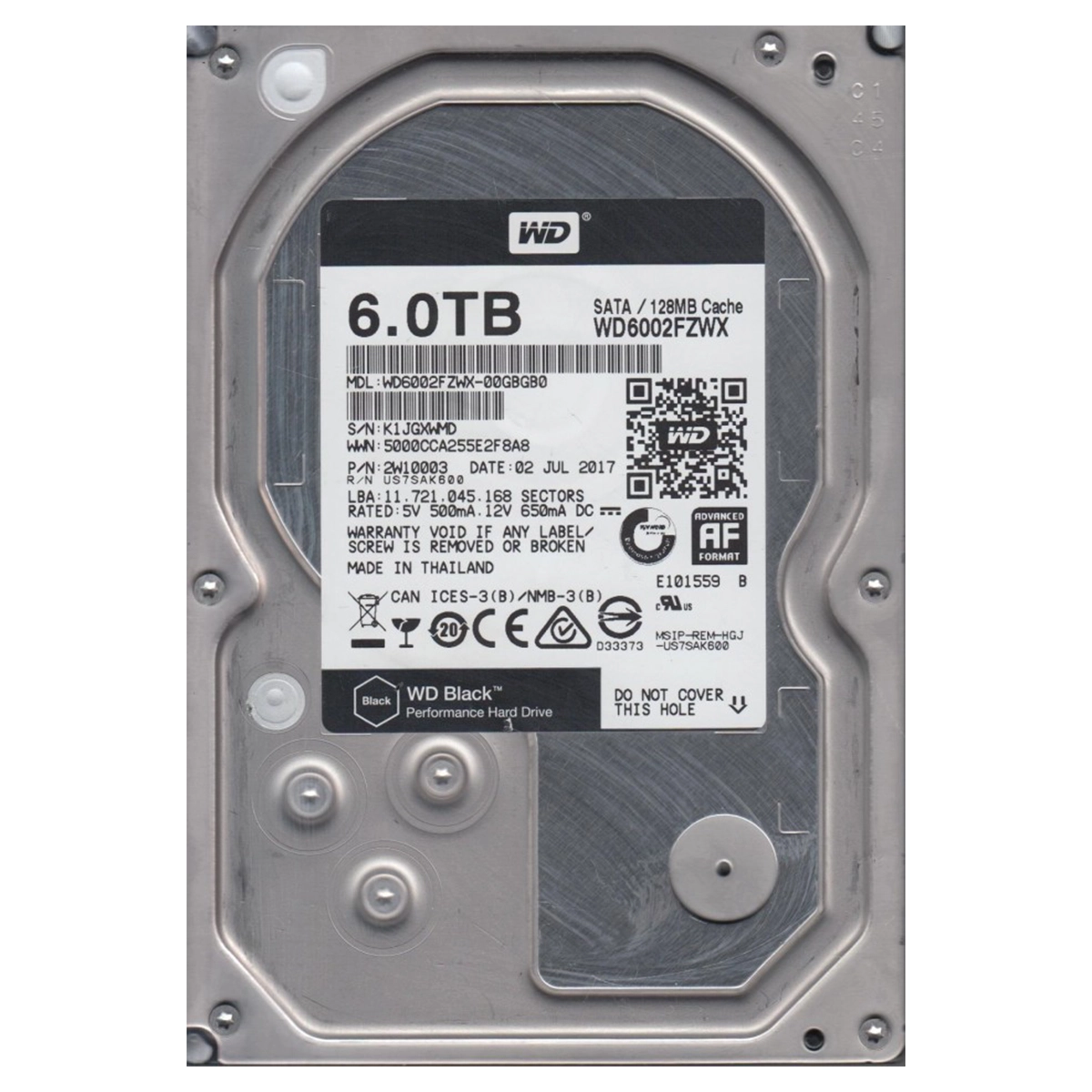 - Western Digital WD6002FZWX | Black 6TB 7200RPM SATA 6Gb/s 128MB Cache (RoHS) 3.5-Inch Hard Drive