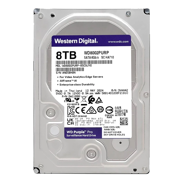 - Western Digital WD8002PURP | Purple Pro Air 8TB 3.5" 6GB/s SATA 7200RPM 256MB Cache Surveillance Hard Drive