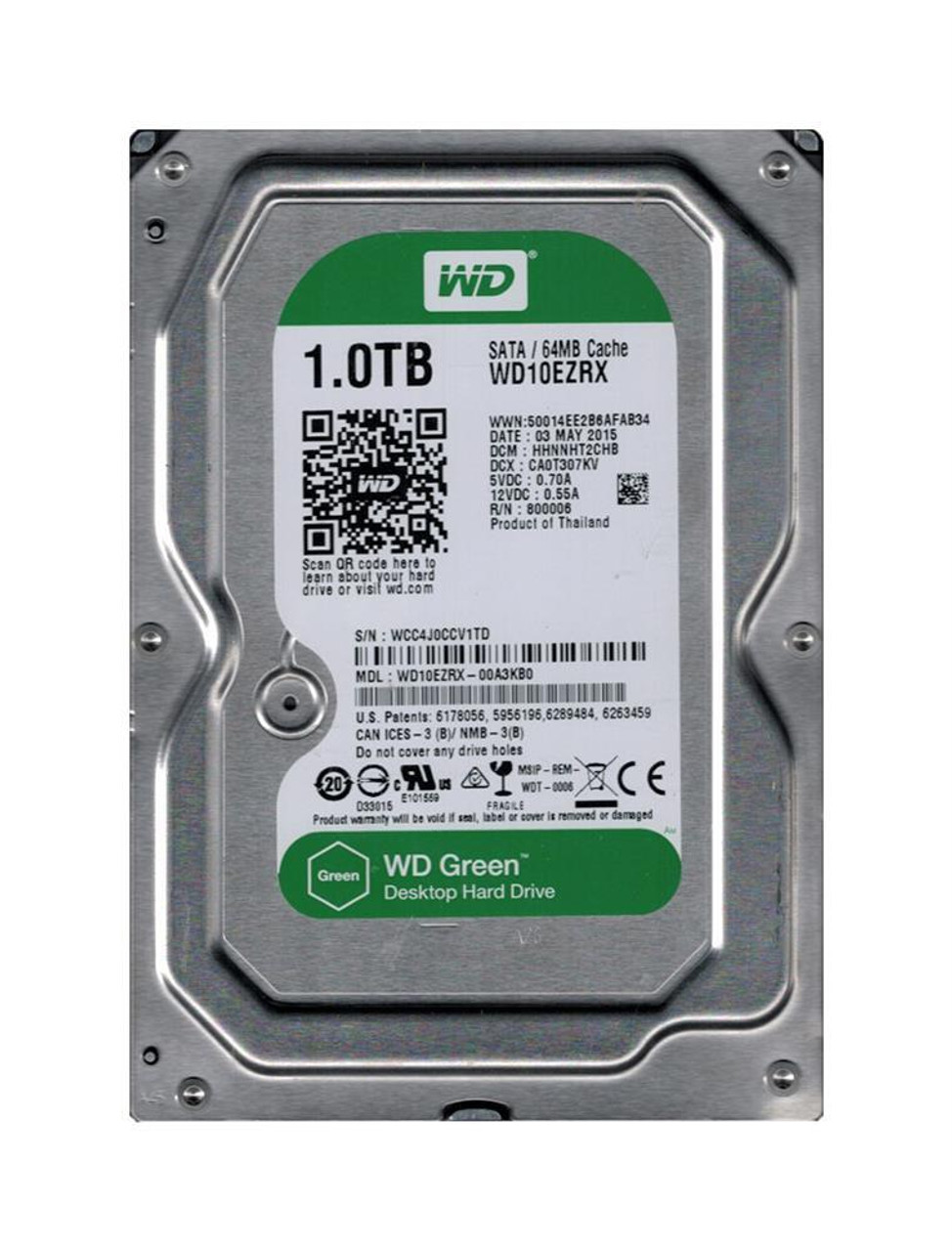 Western Digital WD10EZRX-OOA3KBO | Green 1TB 5400RPM SATA 6Gbps 64MB Cache 3.5-inch Hard Drive