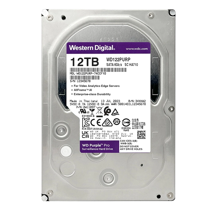 - Western Digital WD122PURP | Purple Pro Air 12TB 3.5" 6GB/s SATA 7200RPM 512MB Cache Surveillance Hard Drive