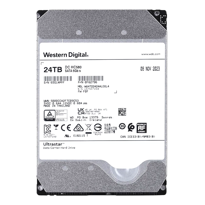 - Western Digital WUH722424ALE6L4 | Ultrastar DC HC580 24TB 3.5" 6GB/s SATA 7200RPM 512MB Cache 512e/4Kn Base SE Data Center Hard Drive