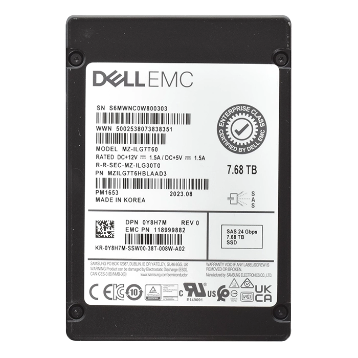 • Dell Y8H7M | 7.68TB 2.5" 24GB/s SAS Triple-Level Cell Read-Intensive ISE Hot-Pluggable Solid State Drive for PowerEdge G14 - G16 Servers and Storage Arrays